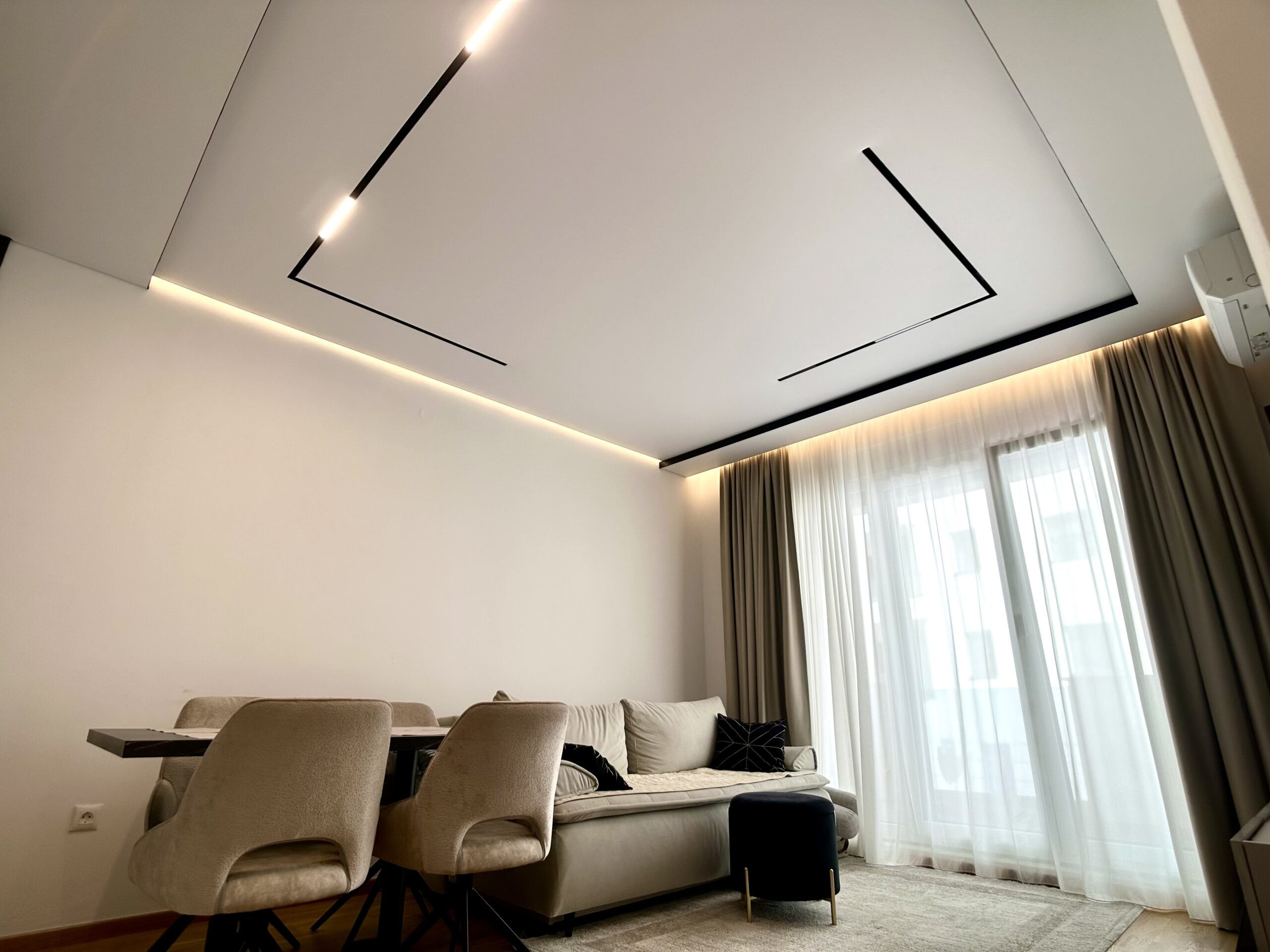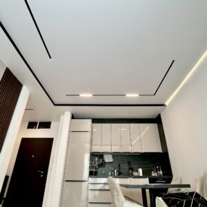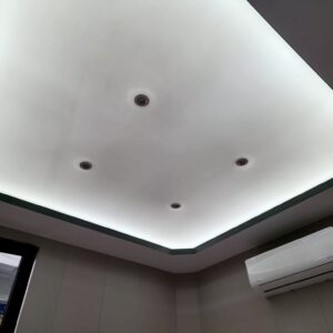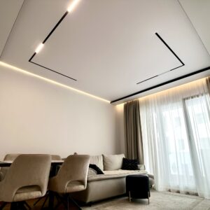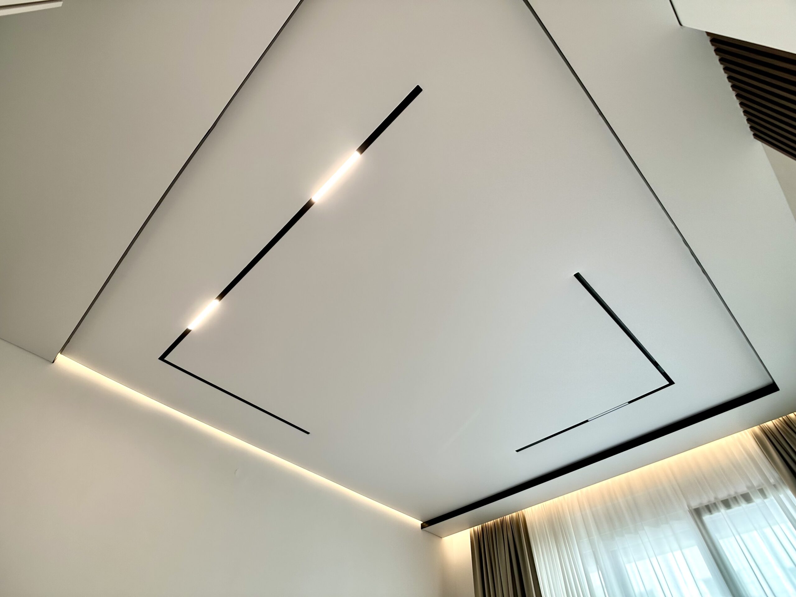 PLAFON U DVA NIVOA Plafon u dva nivoa kombinuje više ravni i visina, omogućavajući oblikovanje prostora kroz volumetriju i svetlosne akcente. Različiti nivoi stvaraju dubinu i vizuelnu dinamiku plafonske konstrukcije.